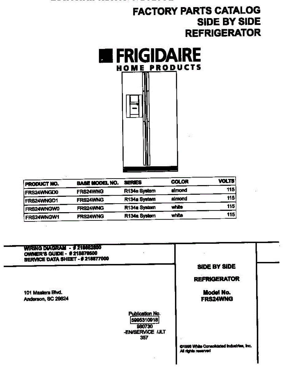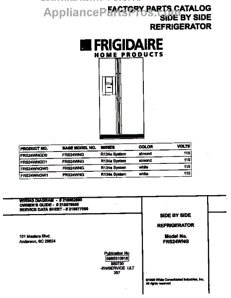 Parts for Frigidaire FRS24WNGD0: 01 - Cover Parts