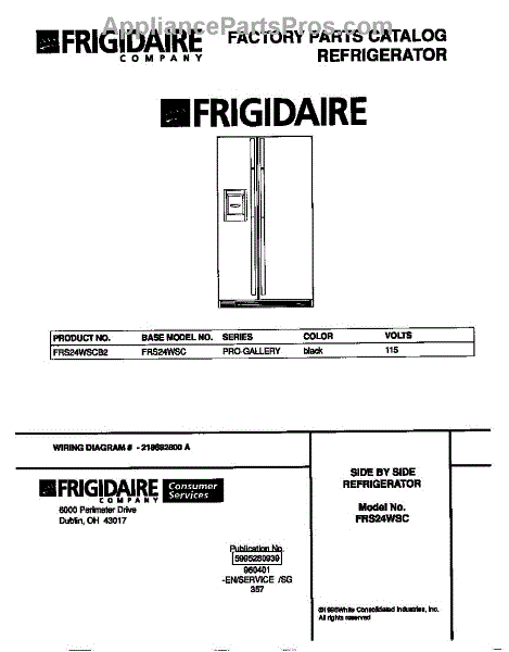 Parts for Frigidaire FRS24WSCB2: 01 - Cover Parts