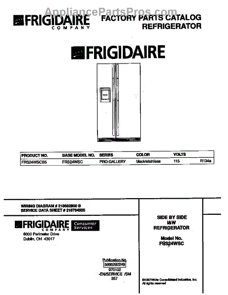 Parts for Frigidaire FRS24WSCB5: 01 - Cover Parts