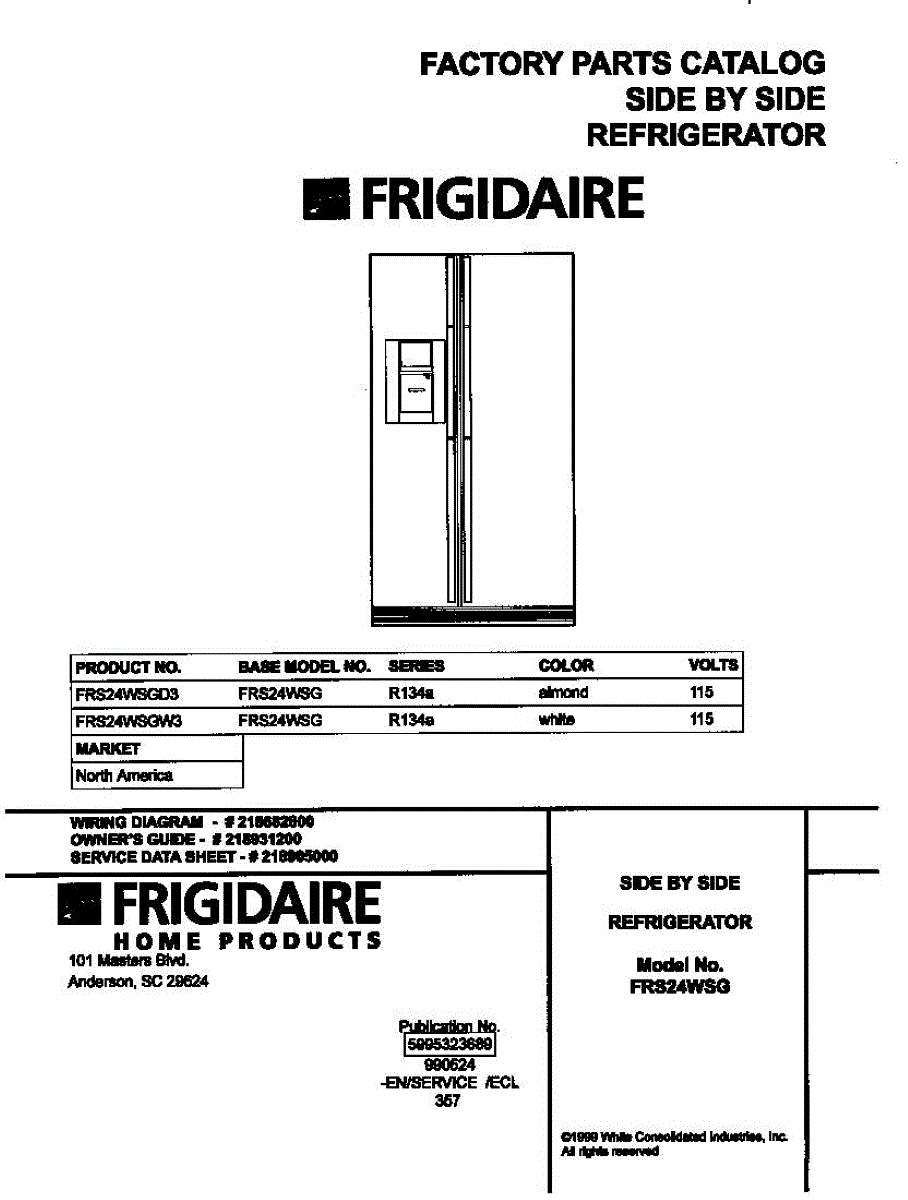 Parts for Frigidaire FRS24WSGW3: 01 - Cover Parts