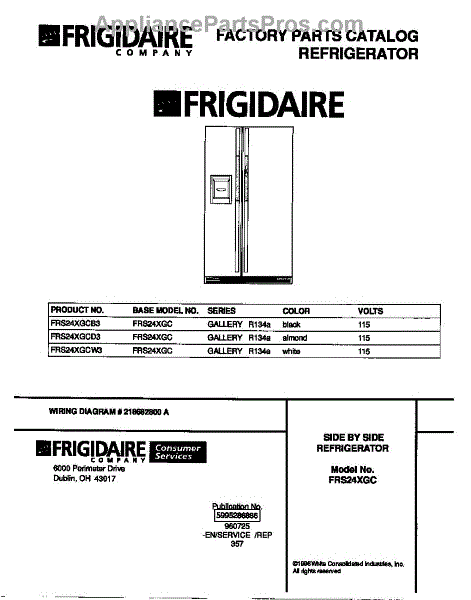 Parts for Frigidaire FRS24XGCD3: 01 - Cover Parts