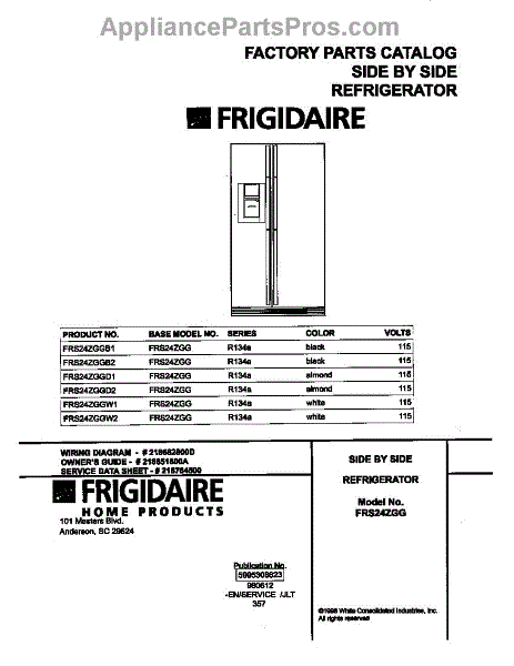 Parts for Frigidaire FRS24ZGGD1: 01 - Cover Parts