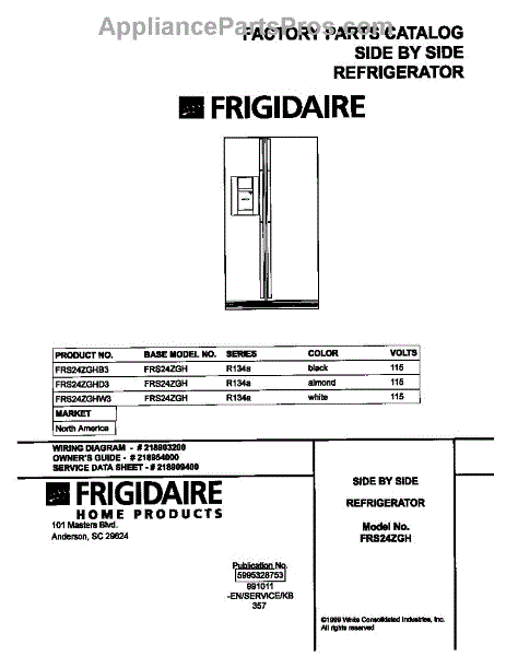 Parts for Frigidaire FRS24ZGHW3: 01 - Cover Parts