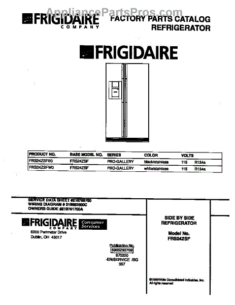 Parts for Frigidaire FRS24ZSFB0: 01 - Cover Parts