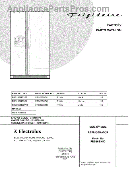 Parts for Frigidaire FRS26BH5CQ2: 01 - Cover Parts