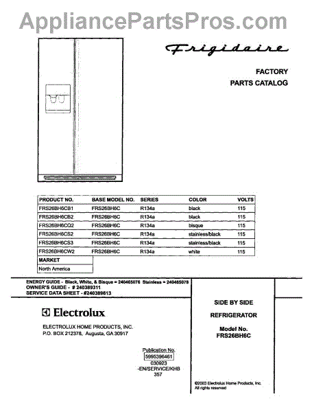 Parts for Frigidaire FRS26BH6CB2: 01 - Cover Parts