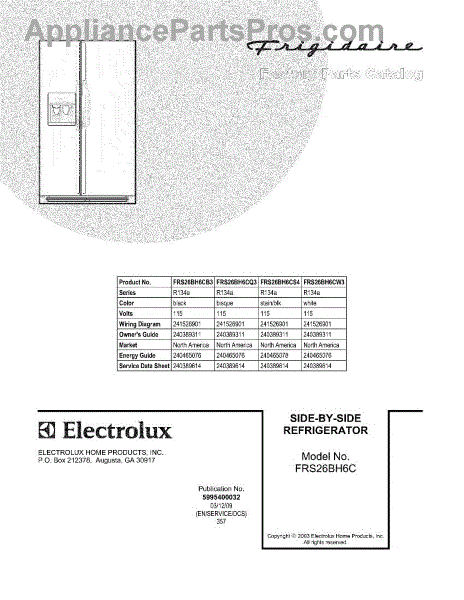 Parts for Frigidaire FRS26BH6CQ3: 01 - Cover Parts