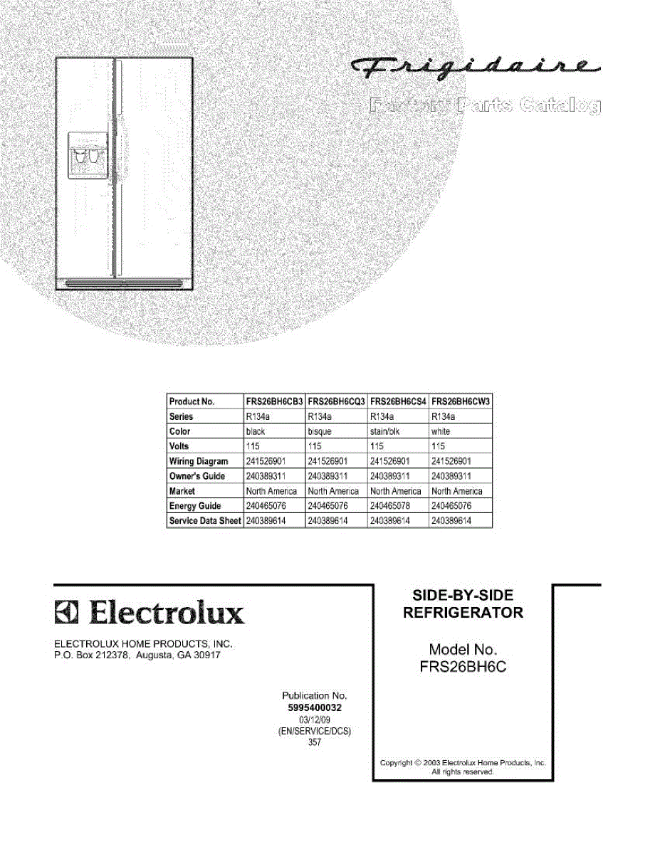 Parts for Frigidaire FRS26BH6CW3: 01 - Cover Parts
