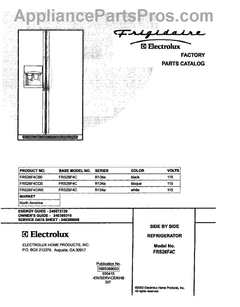 Parts for Frigidaire FRS26F4CB0: 01 - Cover Parts