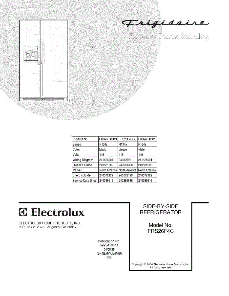 Parts for Frigidaire FRS26F4CQ3: 01 - Cover Parts