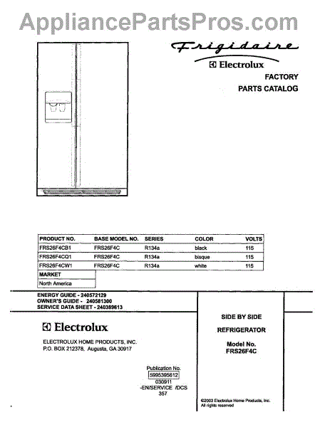Parts for Frigidaire FRS26F4CW1: 01 - Cover Parts