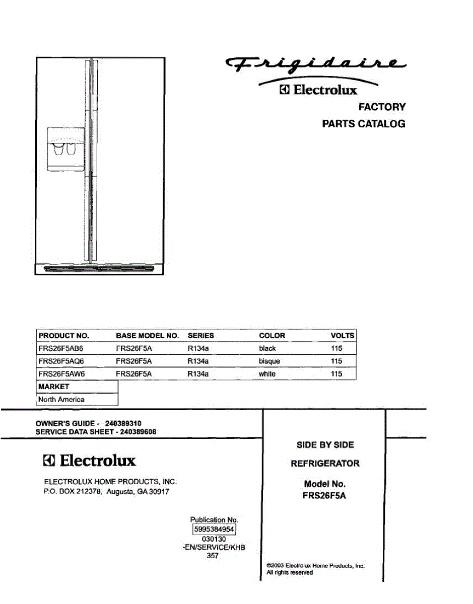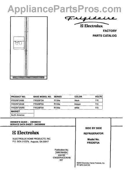 Parts for Frigidaire FRS26F5AQ6: 01 - Cover Parts