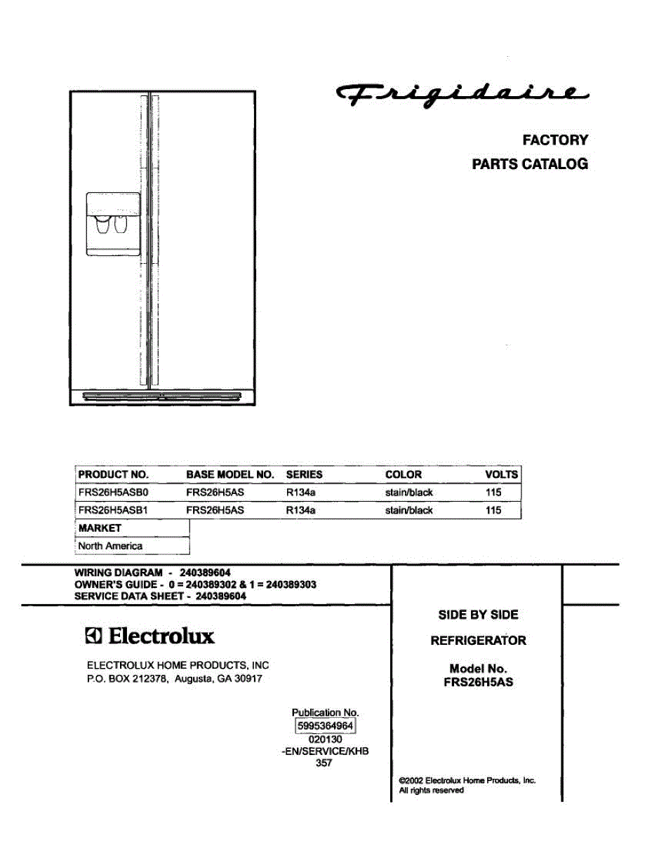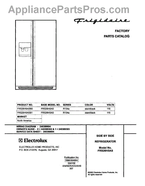 Parts for Frigidaire FRS26H5ASB1: 01 - Cover Parts