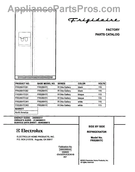 Parts for Frigidaire FRS26H7CB2: 01 - Cover Parts