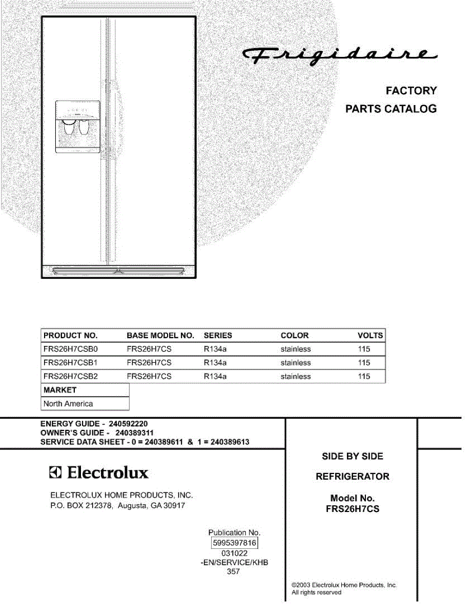 Parts for Frigidaire FRS26H7CSB0: 01 - Cover Parts