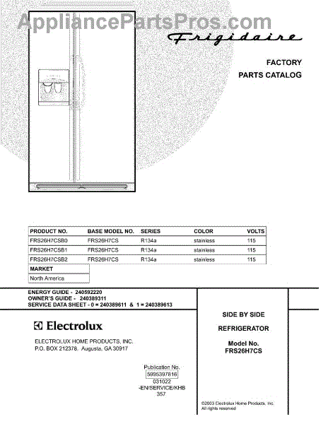 Parts for Frigidaire FRS26H7CSB1: 01 - Cover Parts