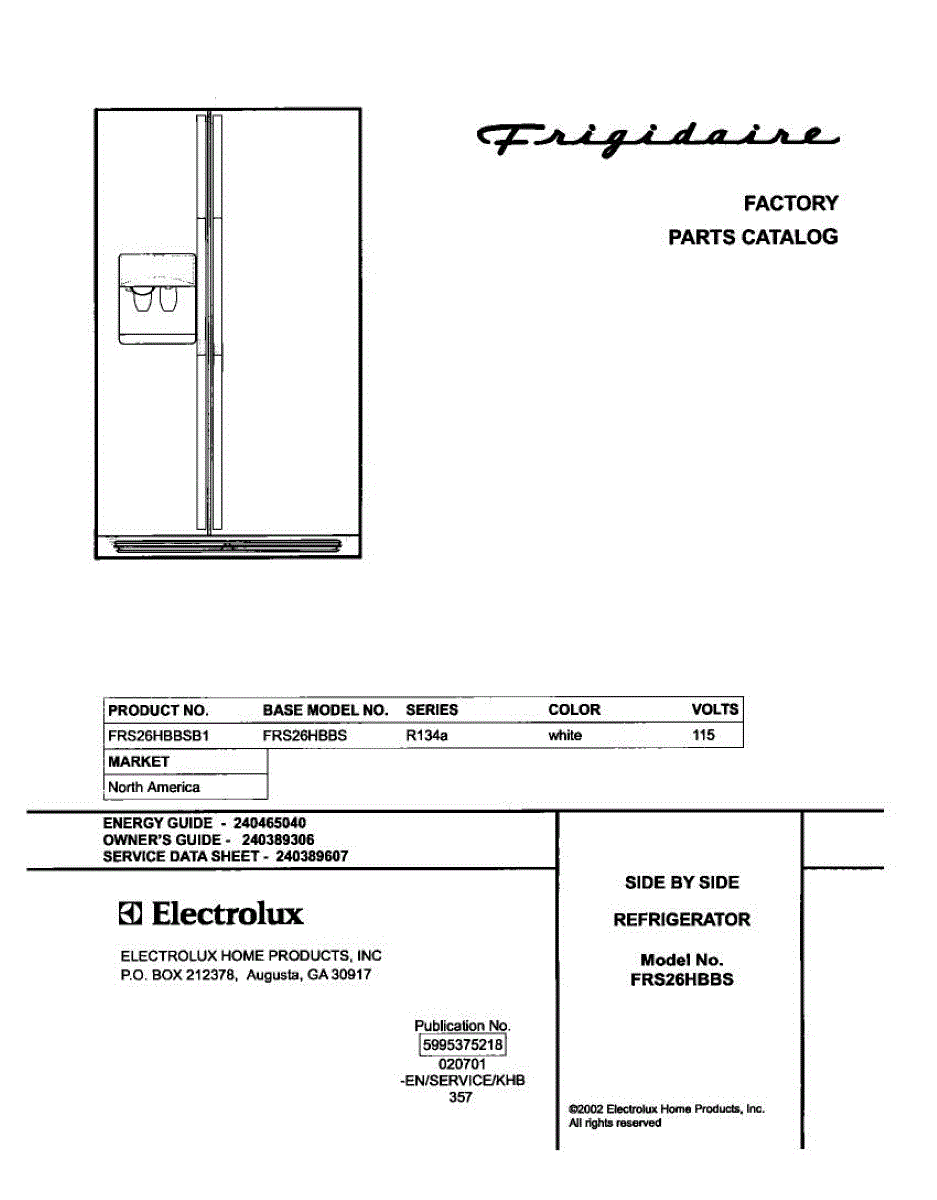 Parts for Frigidaire FRS26HBBSB1: 01 - Cover Parts