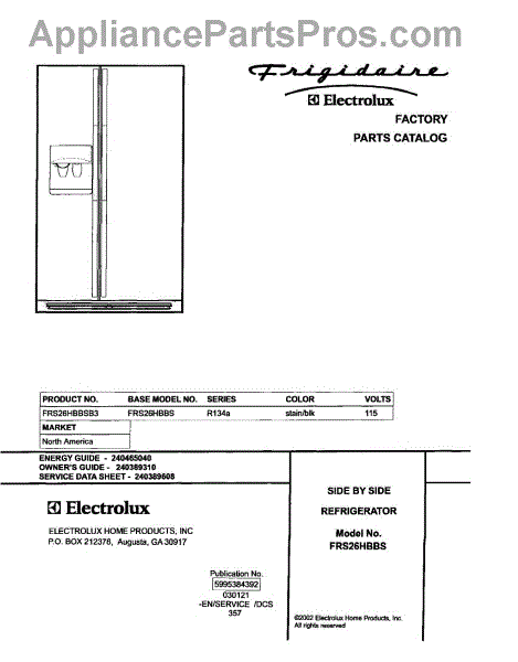 Parts for Frigidaire FRS26HBBSB3: 01 - Cover Parts