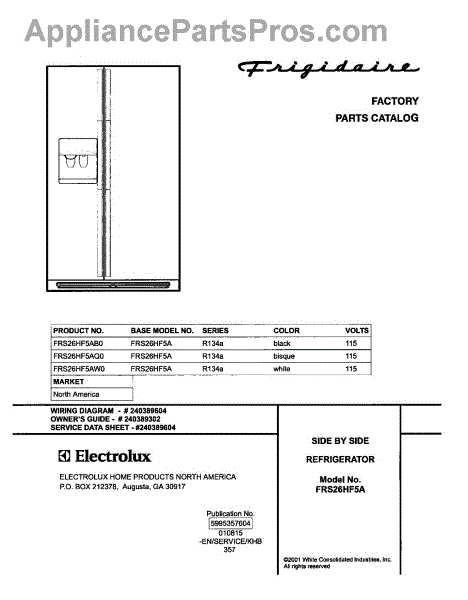 Parts for Frigidaire FRS26HF5AB0: 01 - Cover Parts