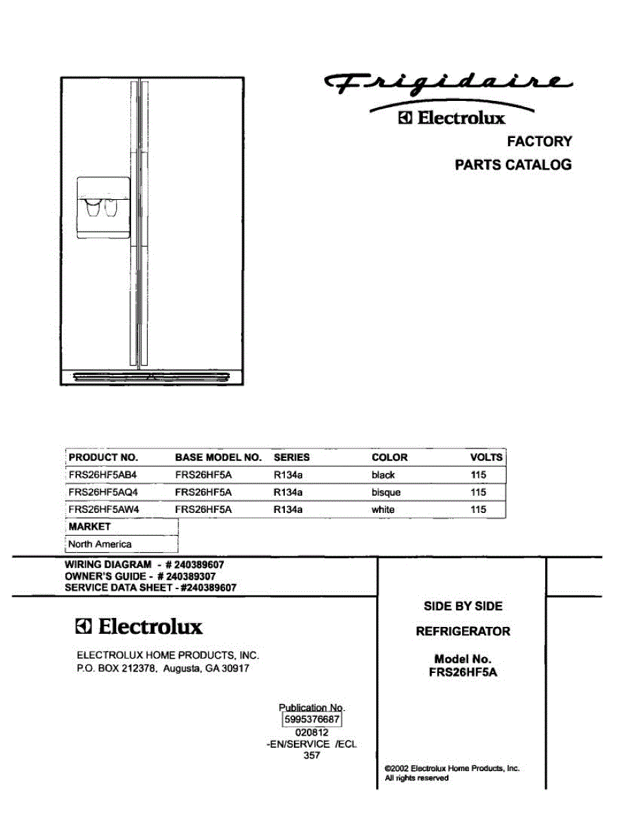 Parts for Frigidaire FRS26HF5AB4: 01 - Cover Parts