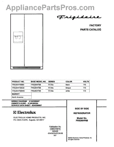 Parts for Frigidaire FRS26HF6BQ0: 01 - Cover Parts