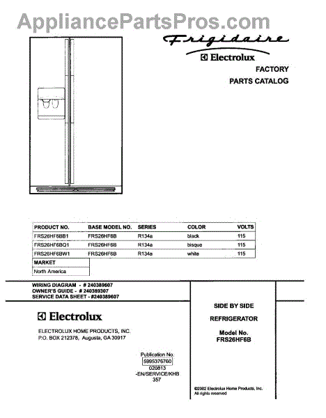 Parts for Frigidaire FRS26HF6BQ1: 01 - Cover Parts