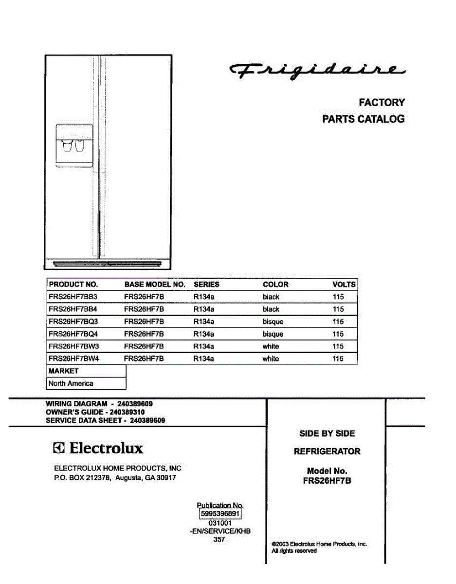 Parts for Frigidaire FRS26HF7BB4: 01 - Cover Parts