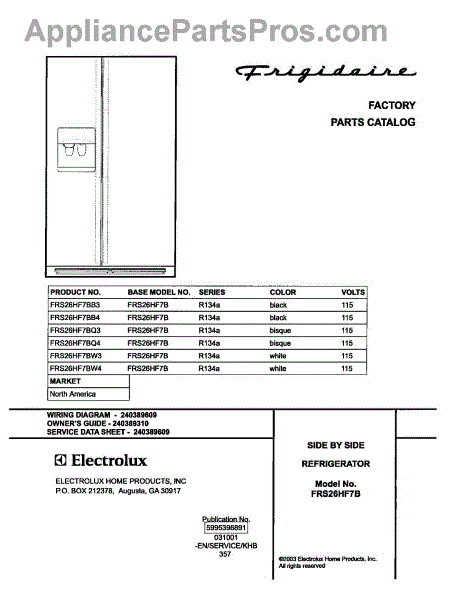 Parts for Frigidaire FRS26HF7BW4: 01 - Cover Parts