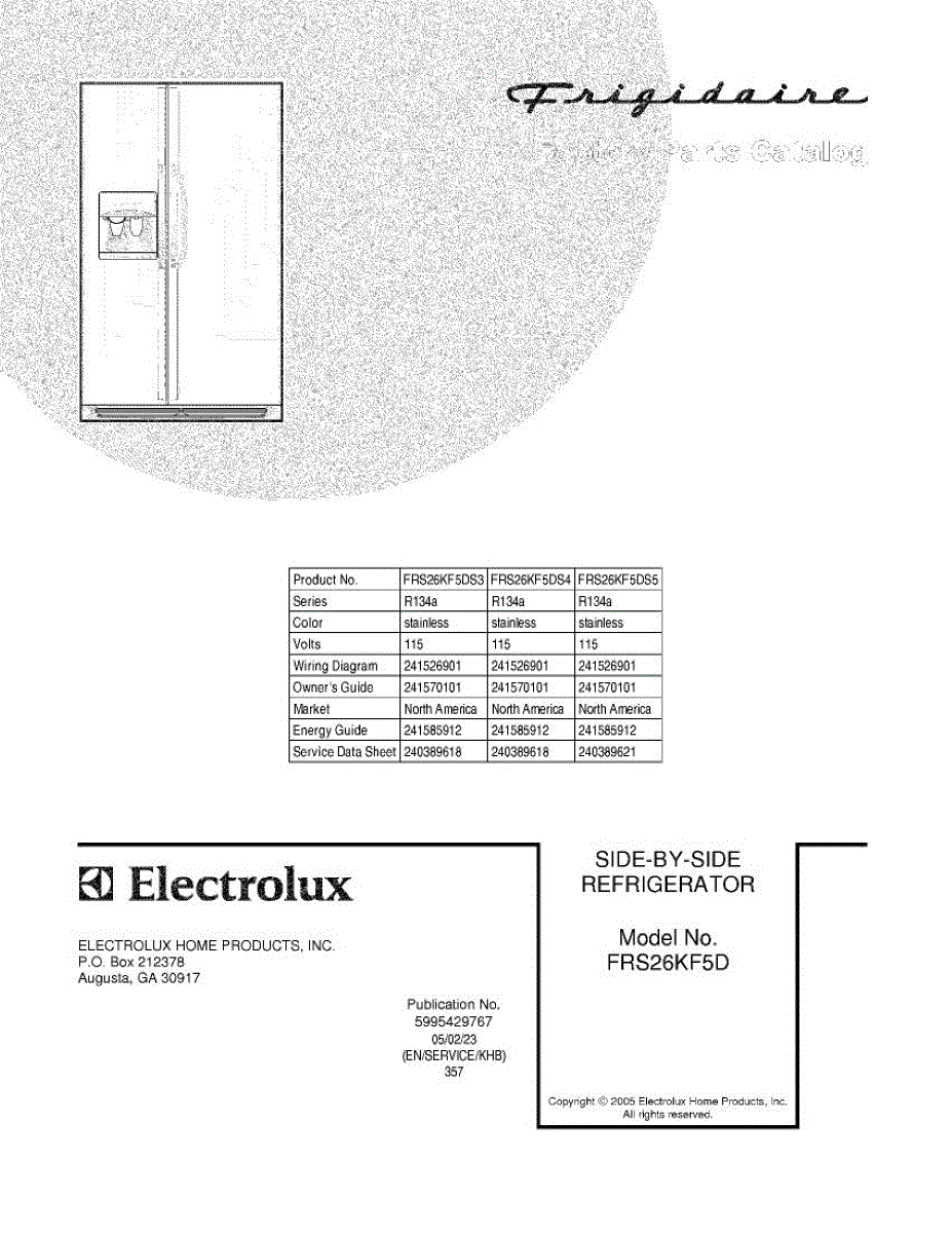Parts for Frigidaire FRS26KF5DS5: 01 - Cover Parts