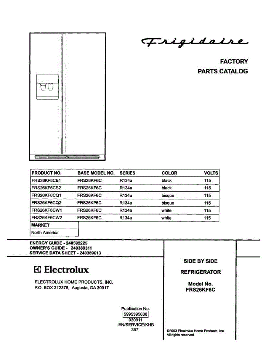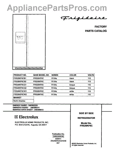 Parts for Frigidaire FRS26KF6CQ1: 01 - Cover Parts