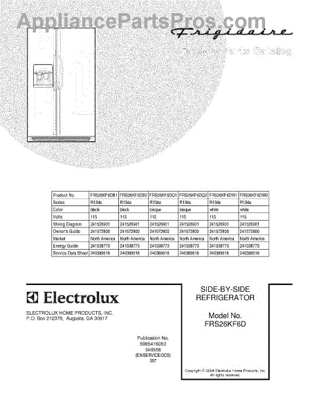 Parts for Frigidaire FRS26KF6DQ2: 01 - Cover Parts