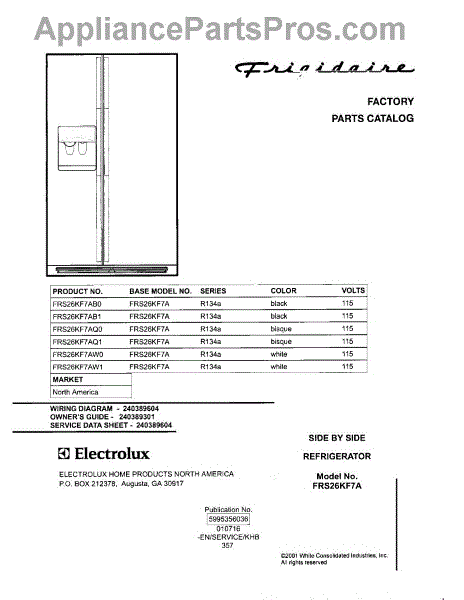 Parts for Frigidaire FRS26KF7AQ0: 01 - Cover Parts