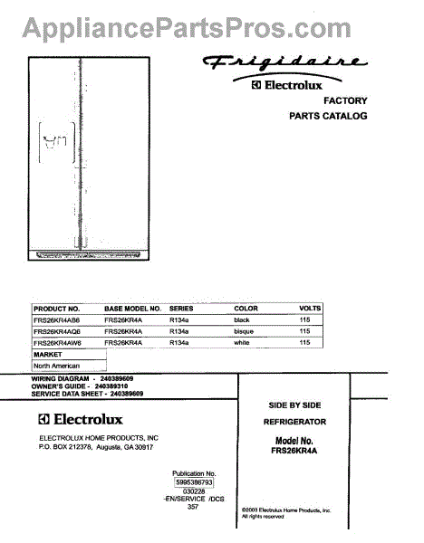 Parts for Frigidaire FRS26KR4AB6: 01 - Cover Parts