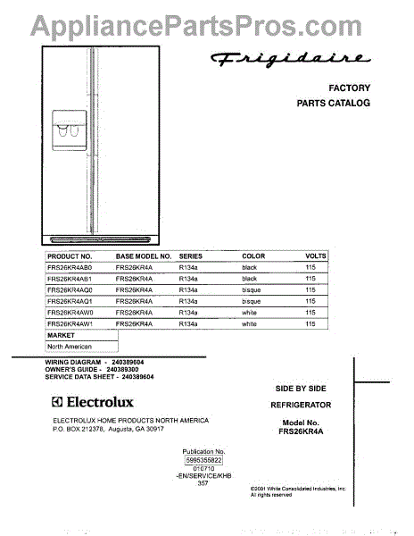 Parts for Frigidaire FRS26KR4AQ1: 01 - Cover Parts