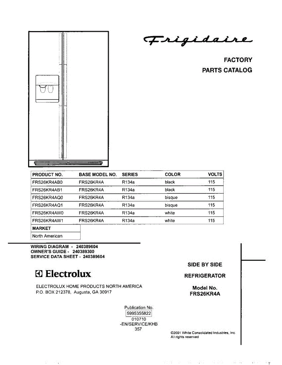 Parts for Frigidaire FRS26KR4AW0: 01 - Cover Parts