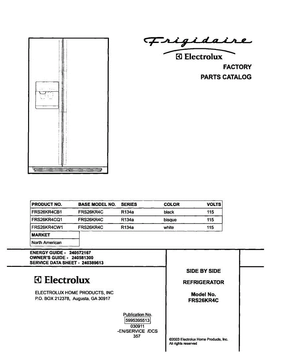 Parts for Frigidaire FRS26KR4CQ1: 01 - Cover Parts