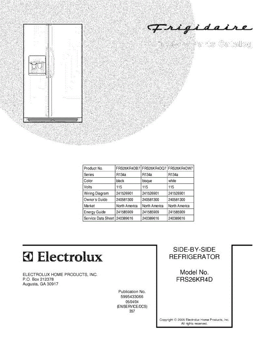 Parts for Frigidaire FRS26KR4DQ7: 01 - Cover Parts