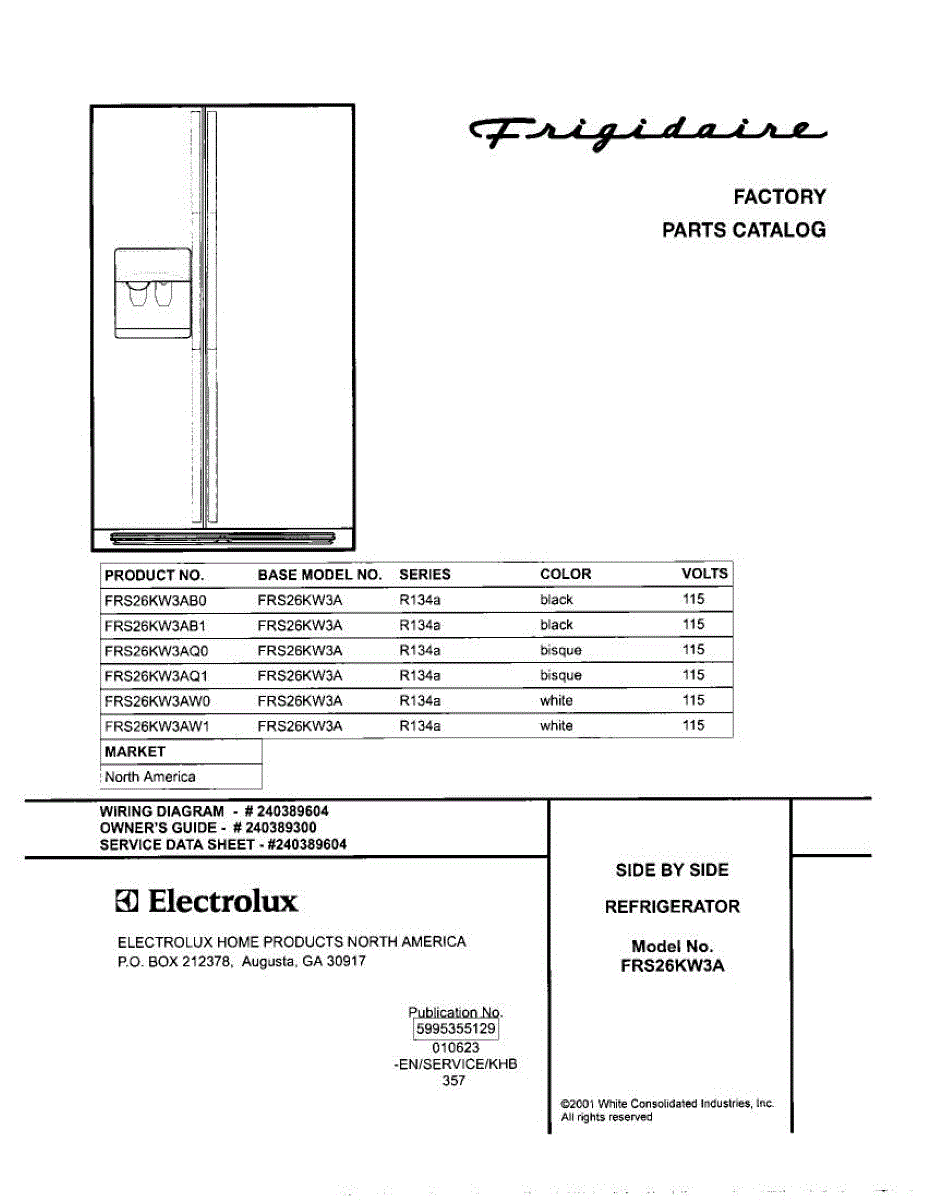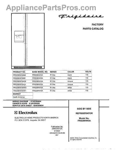Parts for Frigidaire FRS26KW3AB0: 01 - Cover Parts