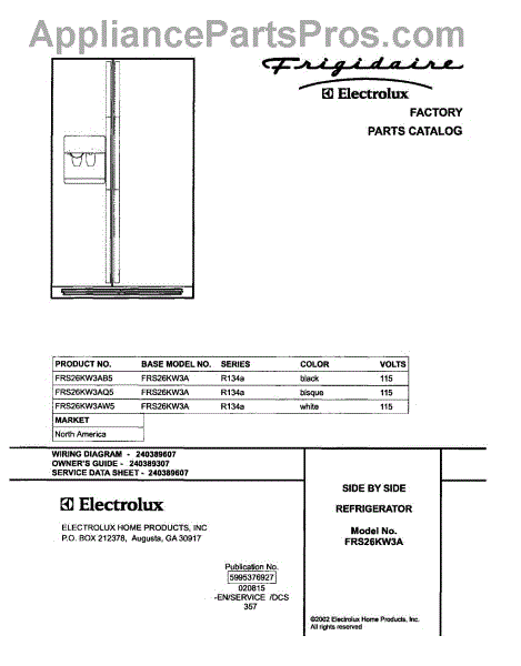 Parts for Frigidaire FRS26KW3AB5: 01 - Cover Parts