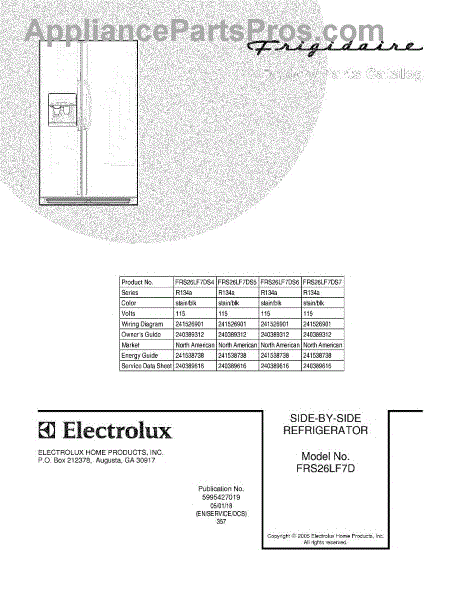 Parts for Frigidaire FRS26LF7DS5: 01 - Cover Parts