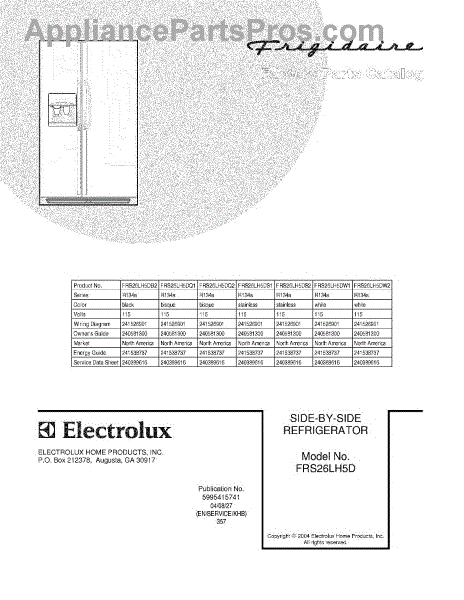 Parts for Frigidaire FRS26LH5DS1: 01 - Cover Parts
