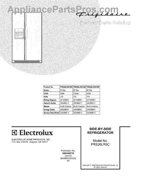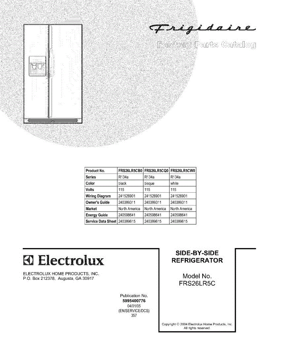 Parts for Frigidaire FRS26LR5CQ0: 01 - Cover Parts