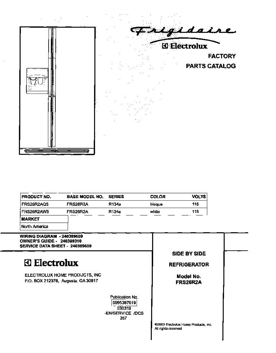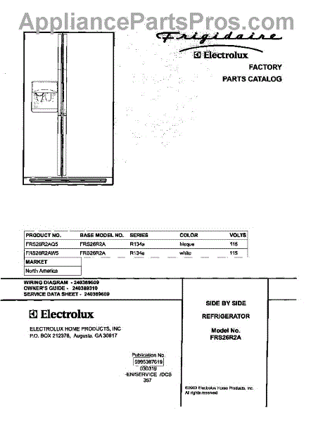 Parts for Frigidaire FRS26R2AQ5: 01 - Cover Parts