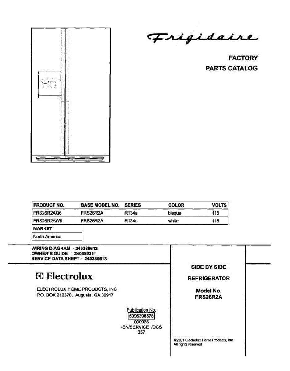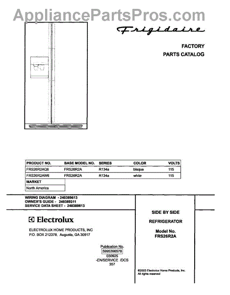 Parts for Frigidaire FRS26R2AQ6: 01 - Cover Parts