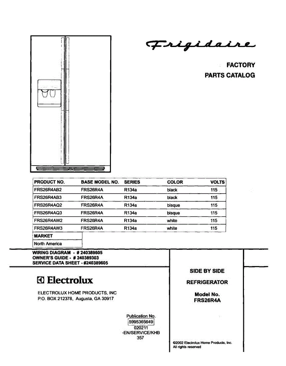 Parts for Frigidaire FRS26R4AB2: 01 - Cover Parts