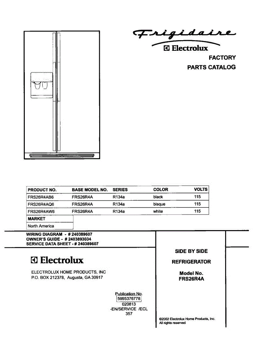 Parts for Frigidaire FRS26R4AB6: 01 - Cover Parts