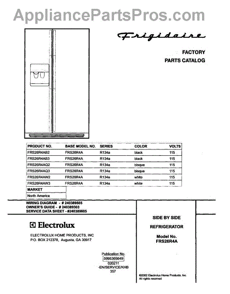 Parts for Frigidaire FRS26R4AQ2: 01 - Cover Parts