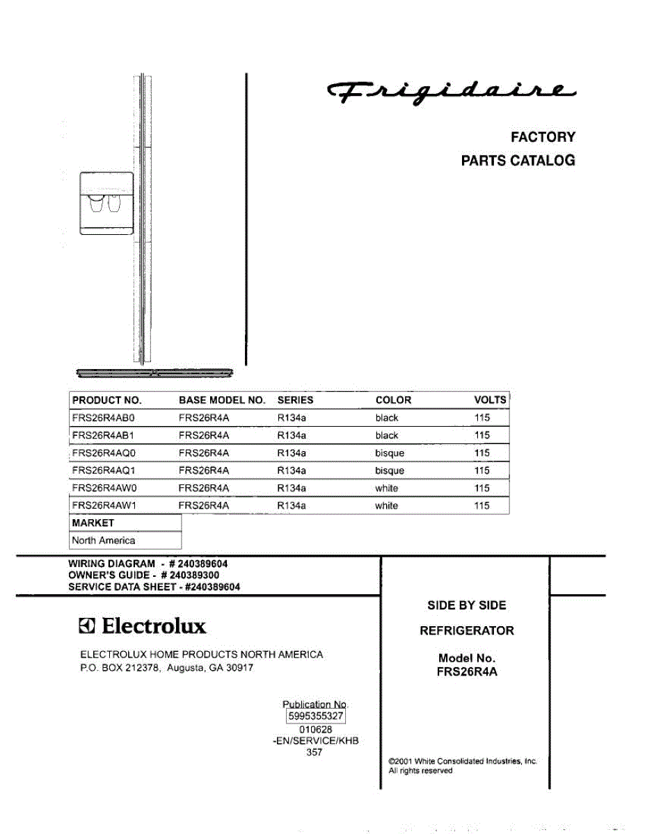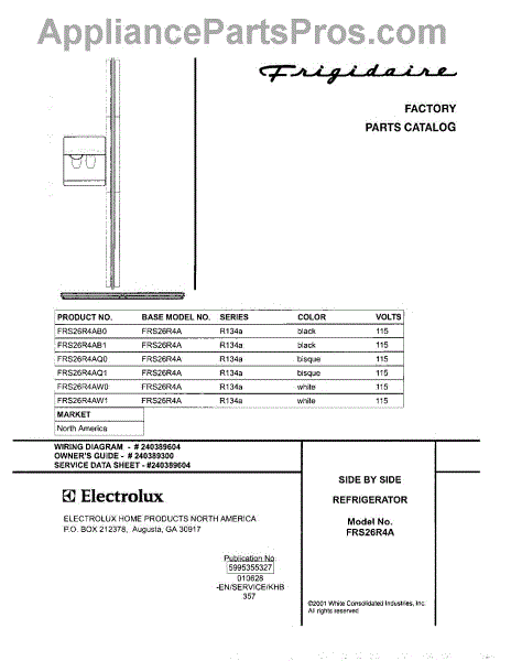 Parts for Frigidaire FRS26R4AW0: 01 - Cover Parts