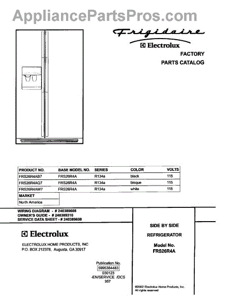 Parts for Frigidaire FRS26R4AW7: 01 - Cover Parts