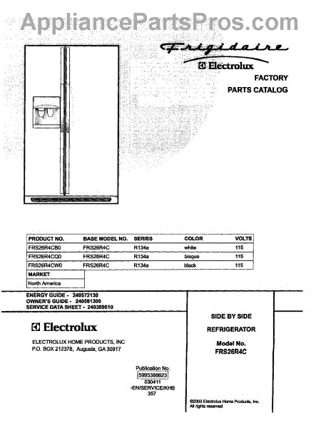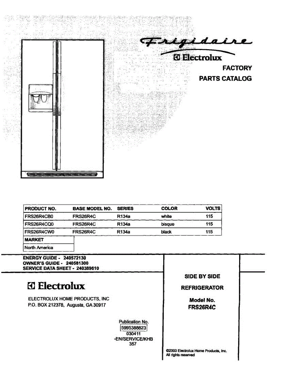 Parts for Frigidaire FRS26R4CQ0: 01 - Cover Parts